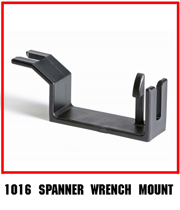 The Hydrant Wrench Mount is a molded one piece bracket designed to mount a standard Elkhart S-454 combination hydrant wrench.