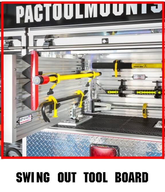 PAC Trac is a patented tool mounting system. PAC Trac tool boards provide quick, secure installation of brackets, all without drilling holes. Uses lab tested special high strength fastners to cleanly and effectively mount your tools. PAC Trac’s permitted uses include horizontal or vertical slide-out tool boards, swing out tool boards and adjustable self-supporting shelving among other items.
