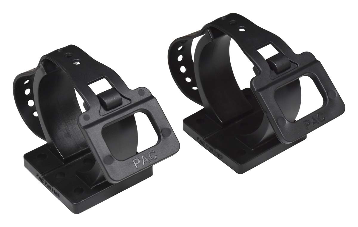 The Super Flex brackets are designed to provide a secure grip-like mount for large cylindrical items. The 3” brackets are ideal for rams, struts, and 3lb extinguishers. The 4” brackets work well for oxygen bottles, rams, struts, and 5lb extinguishers. The Super Flex brackets are space saving with a small footprint with an accessible lock strap for easy use. The adjustable lock strap provides additional security.
