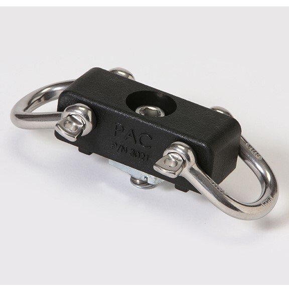 The Tie Down Mount with Double Shackle can be used as a hanging anchor point for various items.